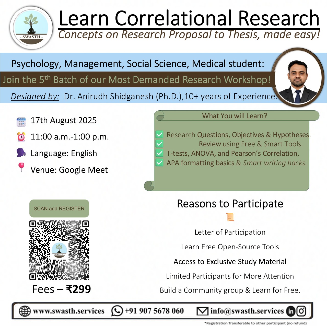 Confusion in research isn’t your fault—but staying confused is. Join our 5th Batch of this 2-hour online workshop, crafted for UG, PG, and PhD students in Psychology, Social Sciences, and Allied Health Sciences. You’ll learn to ask the right questions, analyze data with free tools, and write your thesis with clarity and confidence.